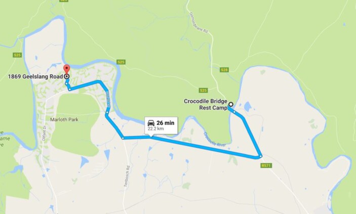 Crocodile Bridge entrance is only 22 km from Martys Place